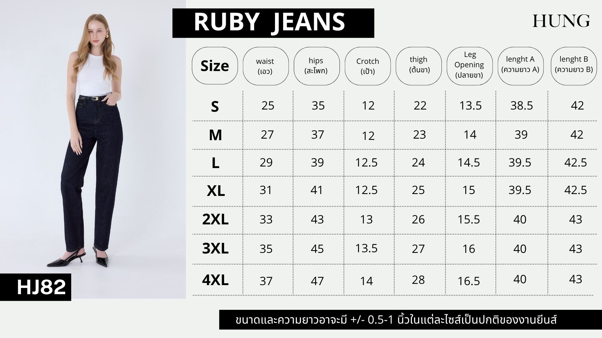 Ruby Jeans (HJ82) our slim straight jeans are designed for everyday comfort with a clean, modern fit. soft Japanese cotton gives a smooth feel while keeping the structure just right.เปิดตัวกางเกงยีนส์ขากระบอกเล็กอย่าง Ruby Jeans สีเข้มแบบ deep indigo สีสุภาพ เอวสูง เก็บทุกสัดส่วน เป็นทรงที่ให้ความคลาสสิคแบบดูดี เรียบหรู ดูแพง ผลิตจากเนื้อผ้า Top Beige Secret cotton 100%  ที่นำเข้าจากญี่ปุ่นเหมือนเดิม ทอด้วยผ้าเส้นด้ายพรีเมียมที่ผ่านการย้อมแบบ Rope Dyeing ซึ่งเป็นเทคนิคเฉพาะของผ้าเดนิมระดับโลก เส้นด้ายจะถูกย้อมด้วยสีครามทับบนสีเบจ ทำให้เกิดเฉดสีเข้มลึกและดูมีมิติ ยิ่งใส่ ยิ่งสวย เพราะทุกการเคลื่อนไหวและทุกการซัก จะค่อย ๆ เผยลายเฟดเฉพาะตัวที่ไม่มีเหมือนกับใครได้เลย